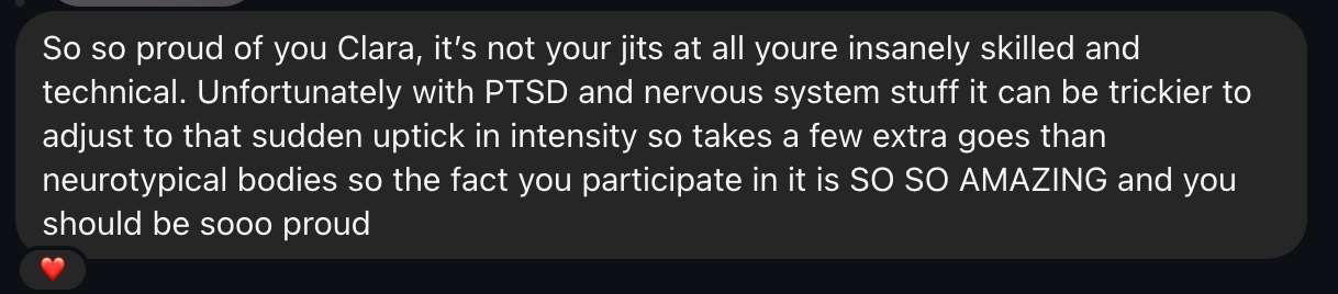 My friend made the very good point that competing while dealing with PTSD is a very unique and challenging thing.